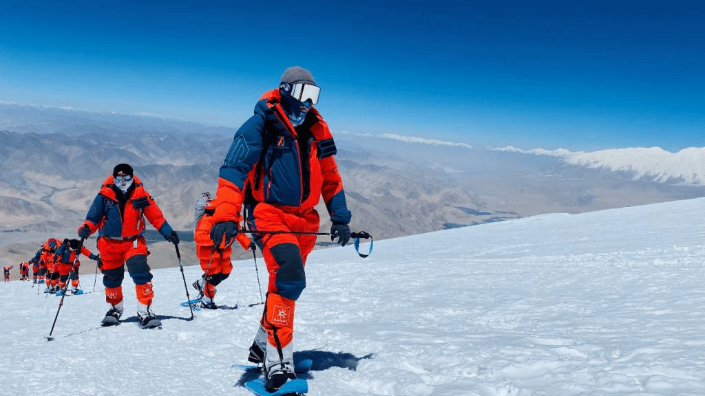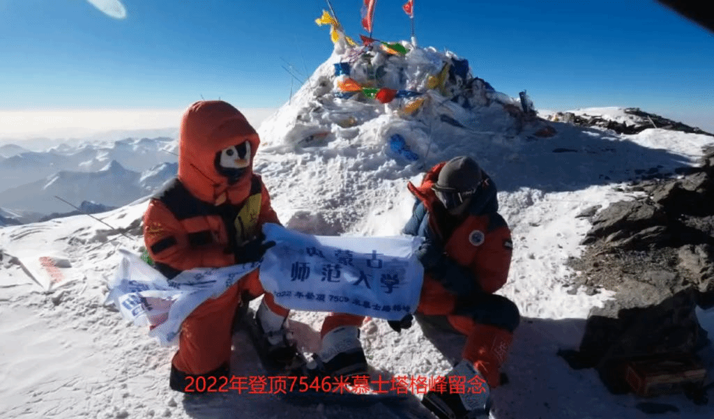 2022年7月4日,买球官方网站校友、毕业于买球官方网站的温家骐随团队登上了位于新疆维吾尔自治区境内被称为“冰山之父”的海拔7546米的慕士塔格峰,并在峰顶展开党旗和印有“买球官方网站”名称的旗帜,向母校70周年华诞送上最真挚的祝福,祝愿母校教育事业蓬勃发展,再攀高峰!