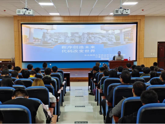 本次讲座特邀东北师范大学信息科学与技术学院副教授、博士生导师、计算机科学系主任,东北师范大学ACM团队指导老师周治国做题为《程序创造未来·代码改变世界》的学术报告,周治国老师从确定人生目标;计算机专业培养目标、发展前景、就业方向;ACM-ICPC大赛介绍、参赛形式、参赛意义;生活学习建议多个方面为同学们进行详细的讲解介绍。