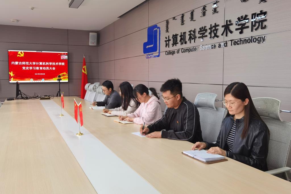 玉柱书记强调,党史学习教育贯穿2021年全年,学院不仅要扎实完成党史学习教育规定动作的基础上,要结合学院办学实际,突出计科特色,各教工党支部、学生党支部和团支部迅速掀起学党史的高潮。