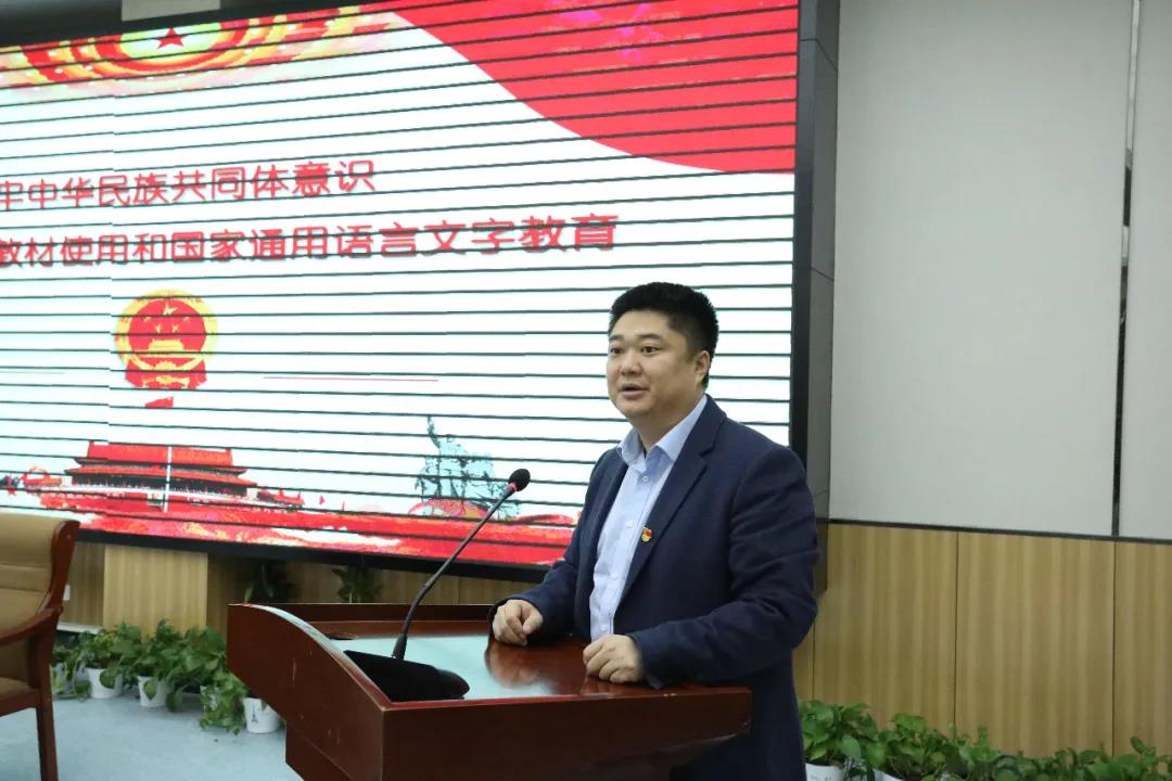 沙金为同学们深入解读了铸牢中华民族共同体意识、推行国家统编教材使用和推进通用语言文字教育的重要意义,并指出“铸牢中华民族共同体意识”是习近平总书记的原创论断,是马克思主义中国化最新理论成果。在党的十九大报告中,习近平总书记强调,深化民族团结进步教育,铸牢中华民族共同体意识,加强各民族交往交流交融,促进各民族像石榴籽一样紧紧抱在一起,共同团结奋斗、共同繁荣发展。作为学生干部,要认真学习党和国家的方针政策,坚决推行国家统编教材使用和国家通用语言教育,真正做到“两个维护”,做“铸牢中华民族共同体意识”坚定的维护者和忠实的践行者。