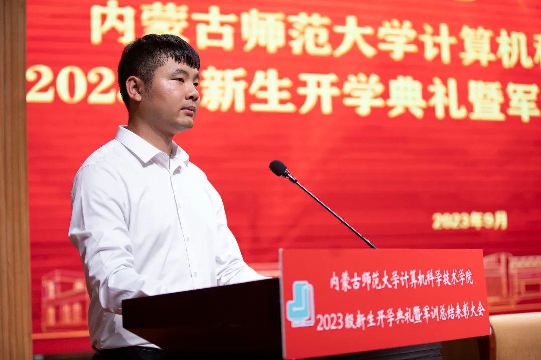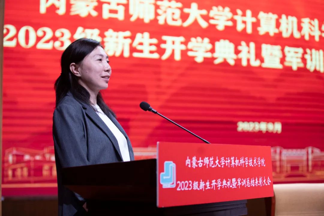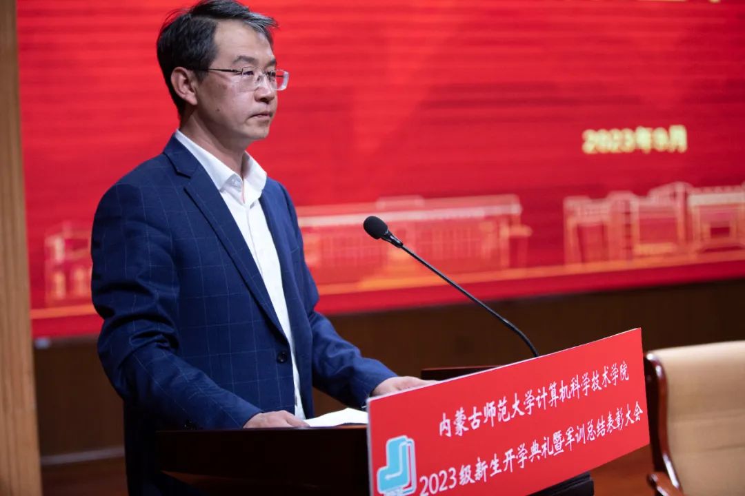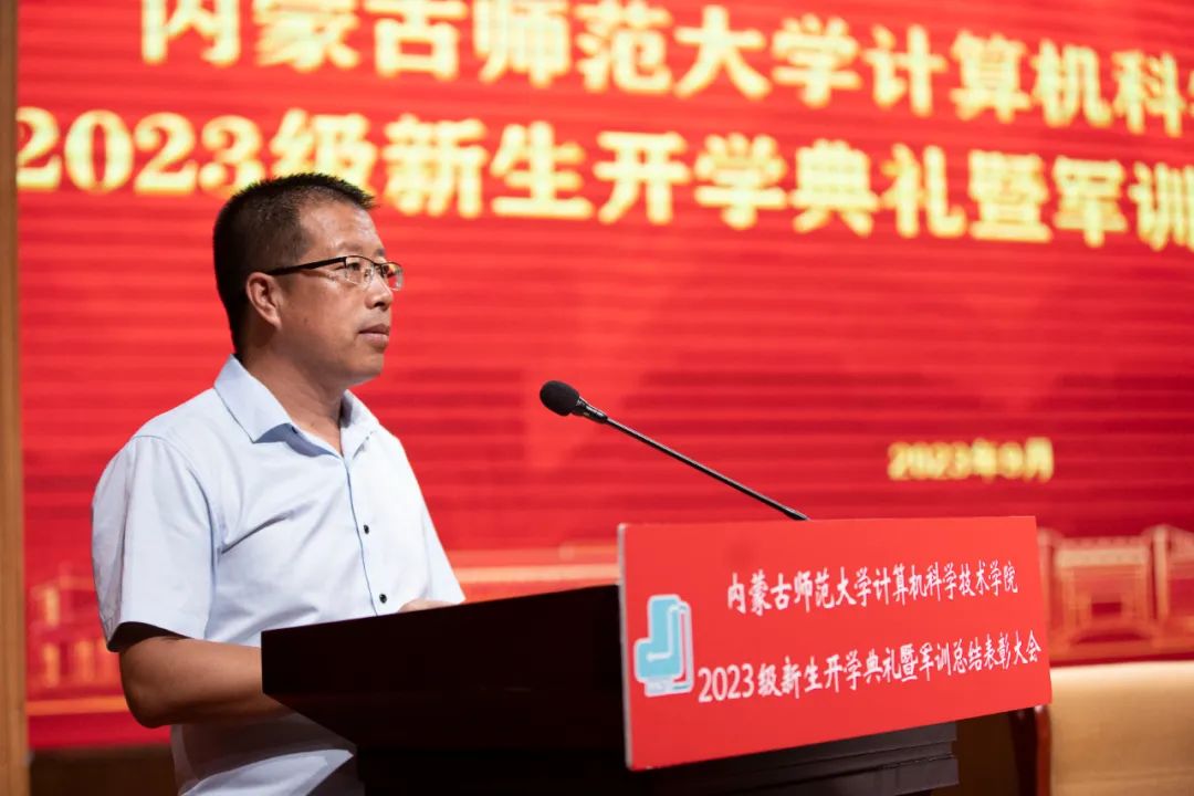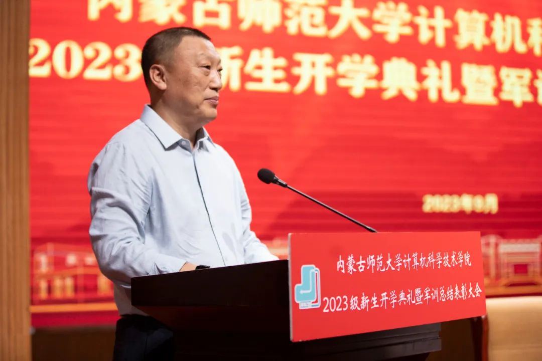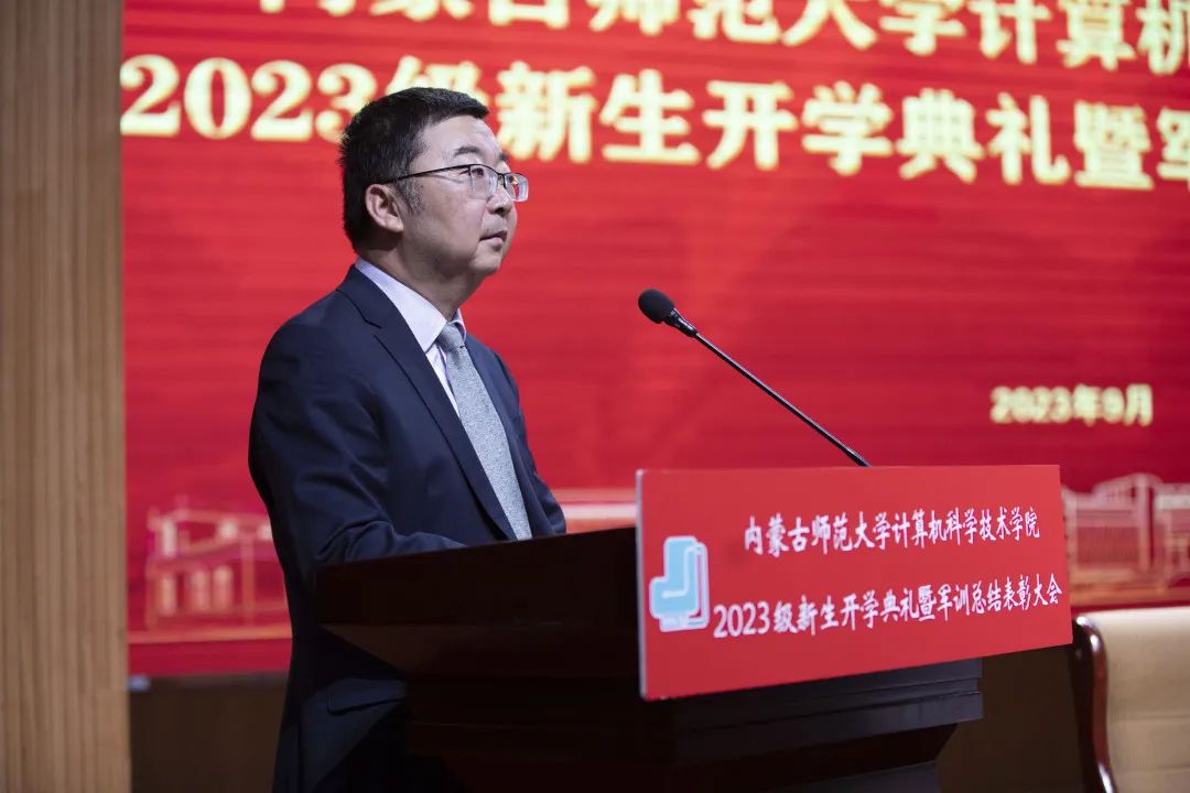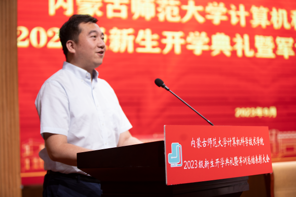 买球官方网站党委书记王海龙,买球官方网站党委副书记、院长、博士生导师林民,副院长斯琴图,计算机系主任朝力萌,网络与软件工程系主任孟繁军,副主任葛湘巍、徐行健,数据科学与人工智能系副主任包萨仁娜,全体新生班辅导员以及买球官网2023级373名本科生和59名研究生出席大会。学院团总支书记赵巍伟主持大会。