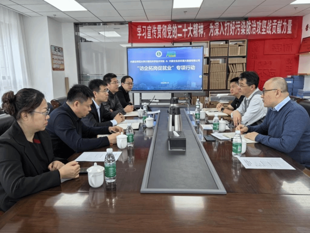 为贯彻党中央、国务院、教育部关于高校毕业生就业工作的决策部署,进一步深化校企合作、推进产教融合,2月21日上午买球官方网站党委副书记、院长王海龙带队,赴内蒙古环保投资集团全资子公司内蒙古生态环境大数据有限公司开展“访企拓岗促就业”专项行动,开拓就业岗位,抢抓春季招聘关键期,多措并举助力毕业生高质量充分就业。