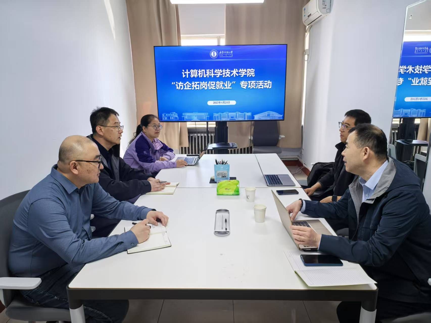 本次交流的核心议题聚焦于“岗位需求对接”与“人才精准输送”。王海龙院长向企业详细介绍了学院人才培养特色及2025、2026届毕业生的专业优势与规模情况,主动了解卓世科技当前及未来一年在人工智能技术研发、应用开发、产品运营等方向的具体用人需求与岗位规划。双方围绕定向岗位开拓、实习就业衔接、校企联合培养等关键就业促进措施进行了务实探讨。