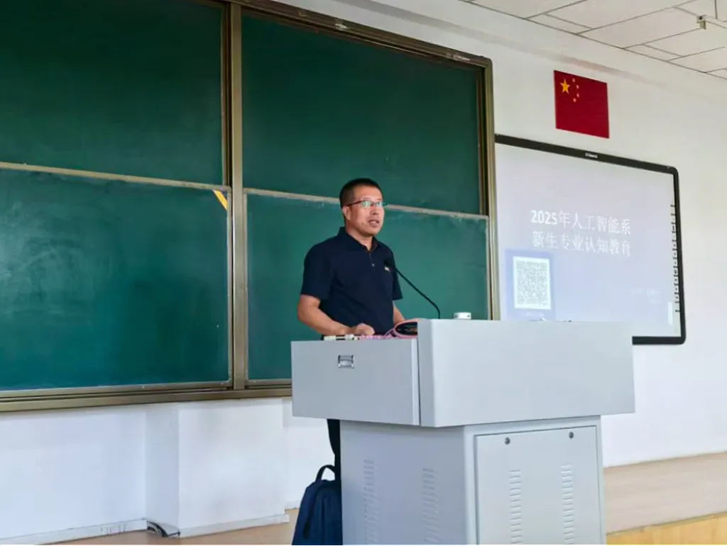 人工智能系主任孟繁军教授聚焦行业前沿,系统梳理了网络工程专业和数据科学与大数据技术专业的最新发展趋势和就业前景。他通过往届优秀学生的成长案例,阐述了扎实的专业基础和创新实践能力对未来发展的重要性,鼓励2025级新生在未来四年学习过程中要勇于探索,逐步深入学科领域,构建扎实的知识体系。