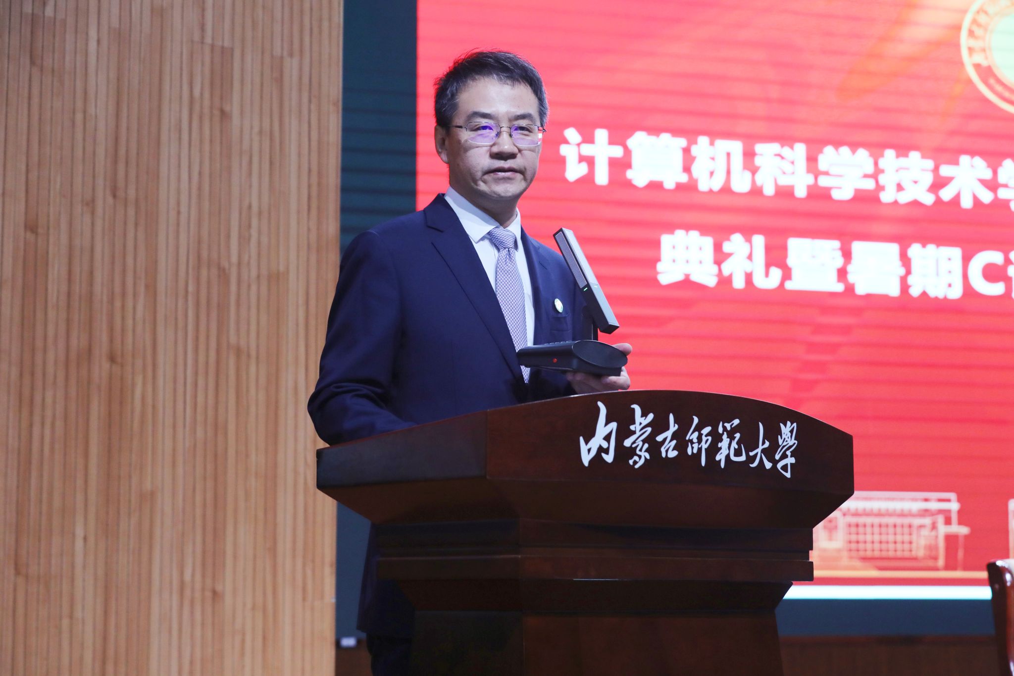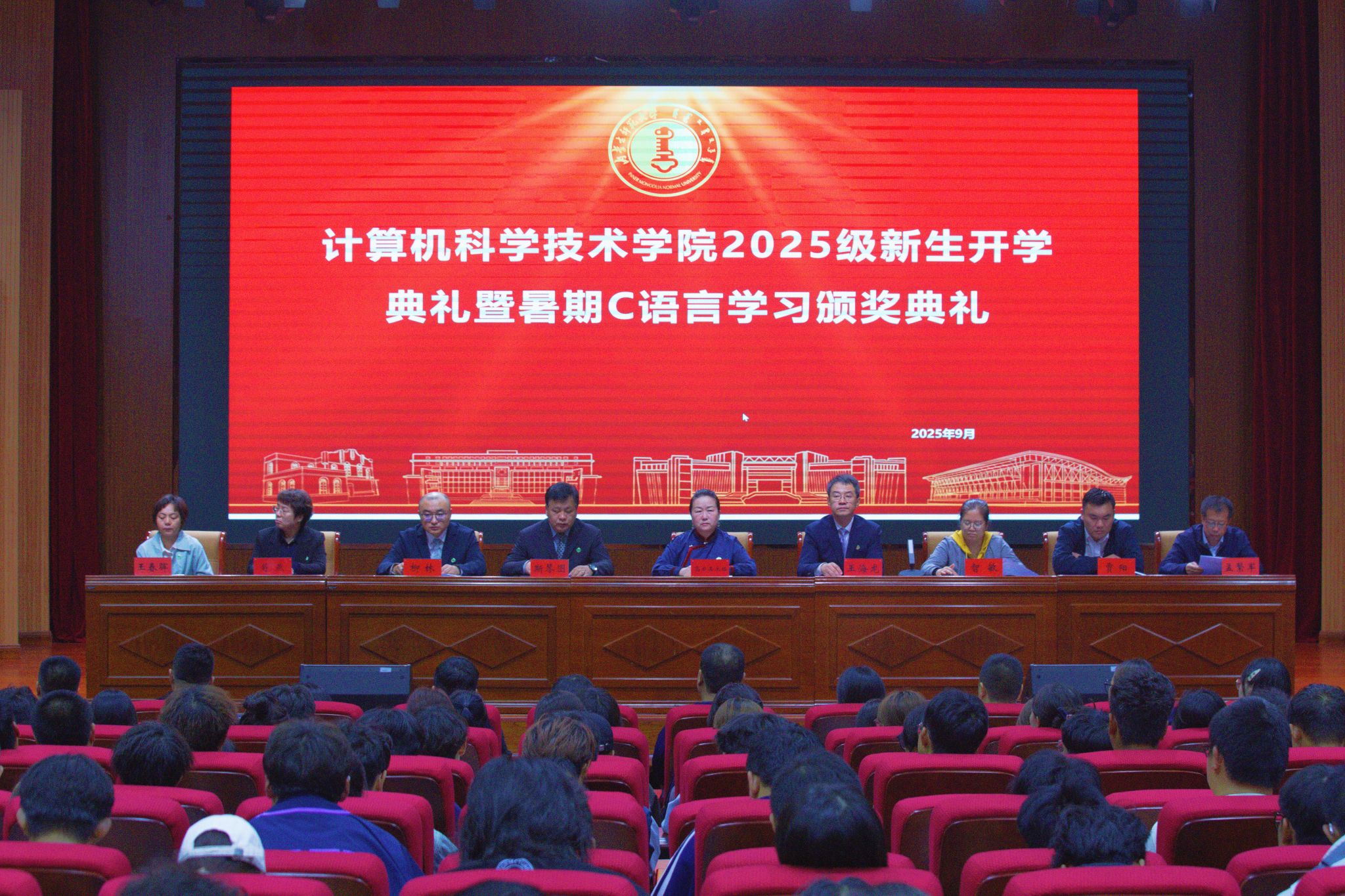 9月27日,买球官方网站举行2025级本科生开学典礼暨暑期C语言学习颁奖典礼在盛乐校区图书馆报告厅举行,共迎358名2025级本科新生。学院党委书记乌日其木格,院长王海龙,副院长斯琴图、智敏、柳林、贾阳出席开学典礼,各系部负责人、辅导员、新生班主任参加开学典礼,典礼由副院长柳林主持。