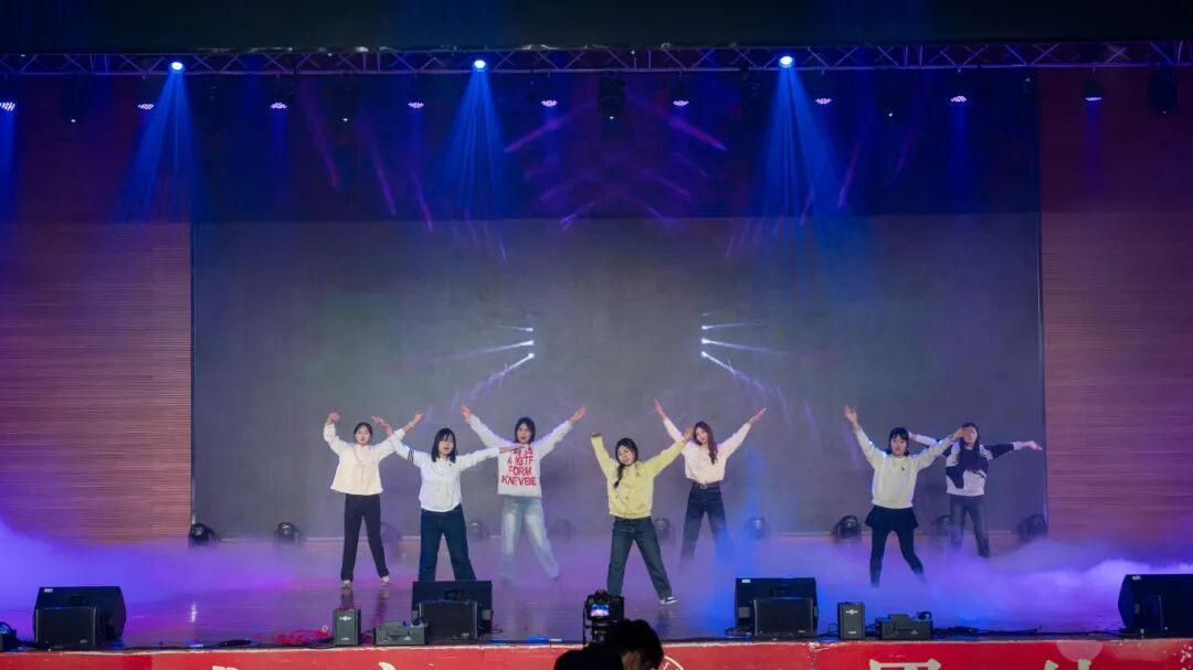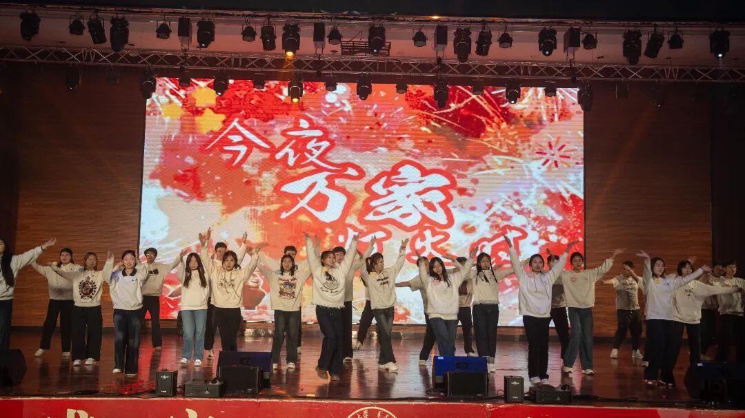 晚会在一场创意独特的幕布剧中拉开序幕,光影交织的视觉语言生动诠释了青春的理想与追寻,迅速点燃了全场氛围。整场演出节目类型丰富、表现形式多元,涵盖舞蹈、歌唱、语言类及乐队表演等多种艺术形式。活力四射的舞蹈串烧以整齐的编排和动感节奏引爆现场;歌舞表演将经典曲目重新演绎,展现青春洋溢的时代气息;深情对唱情感细腻,和声优美动人,营造出温馨而富有感染力的舞台氛围;幽默诙谐的小品围绕校园生活展开,贴近现实的情节设计引发阵阵笑声与共鸣;主题话剧聚焦青年成长议题,剧情层层推进,表演真挚深刻,引人思考;最后,激情四射的乐队表演将现场气氛推向高潮,电声乐器与饱满人声交织,展现出同学们出色的舞台表现力和音乐创造力。