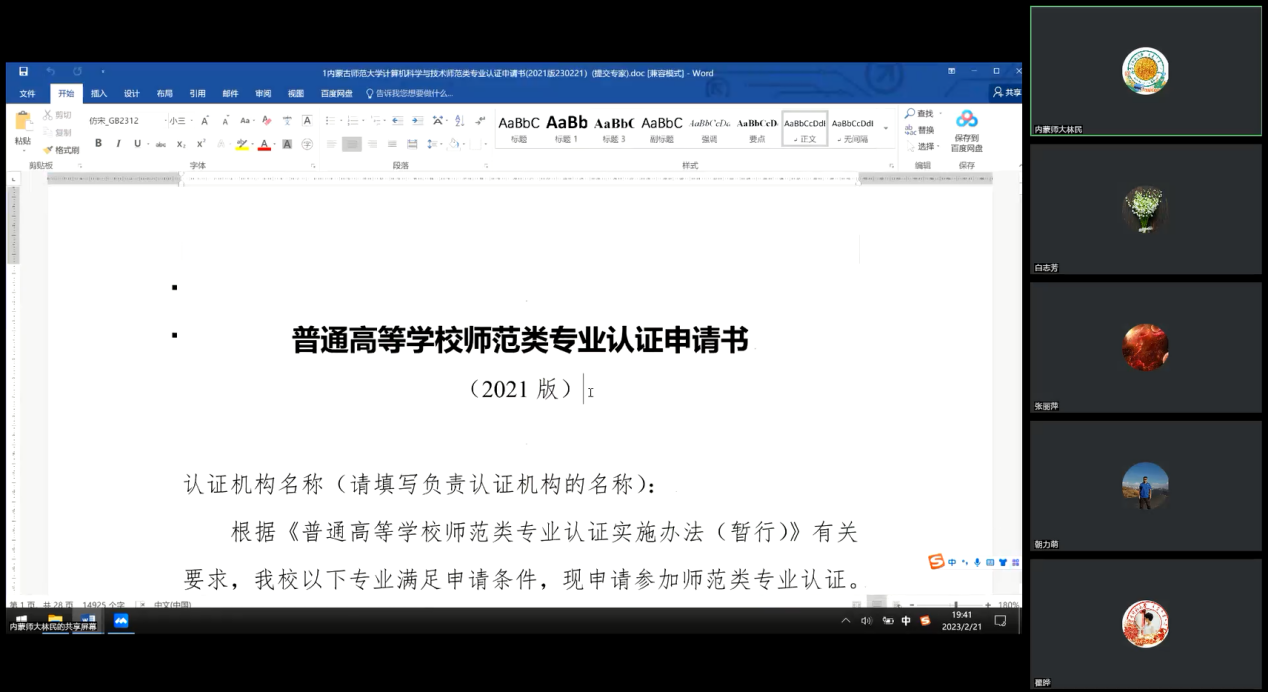 2023年2月21日,买球官网以线上腾讯会议的方式召开了师范类专业认证申请书解读讨论会议。学院院长林民、副院长智敏和师范专业核心课程负责人参加了会议。