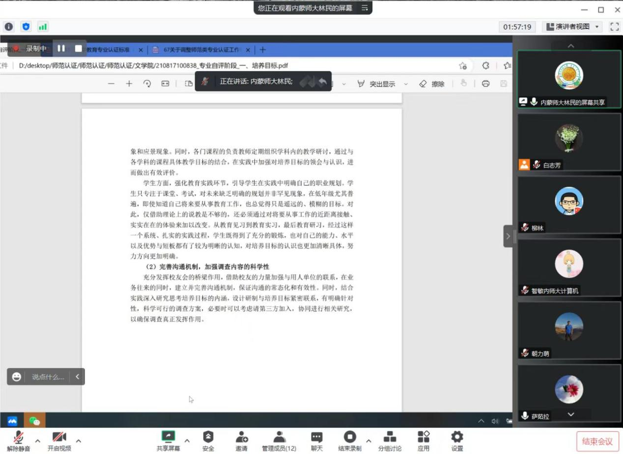为持续推进买球官网师范认证工作顺利开展,2023年2月7日晚上,买球官网以线上腾讯会议的方式召开了师范认证自评报告筹备会议。学院院长林民、副院长智敏和自评报告各组负责人参加了会议。