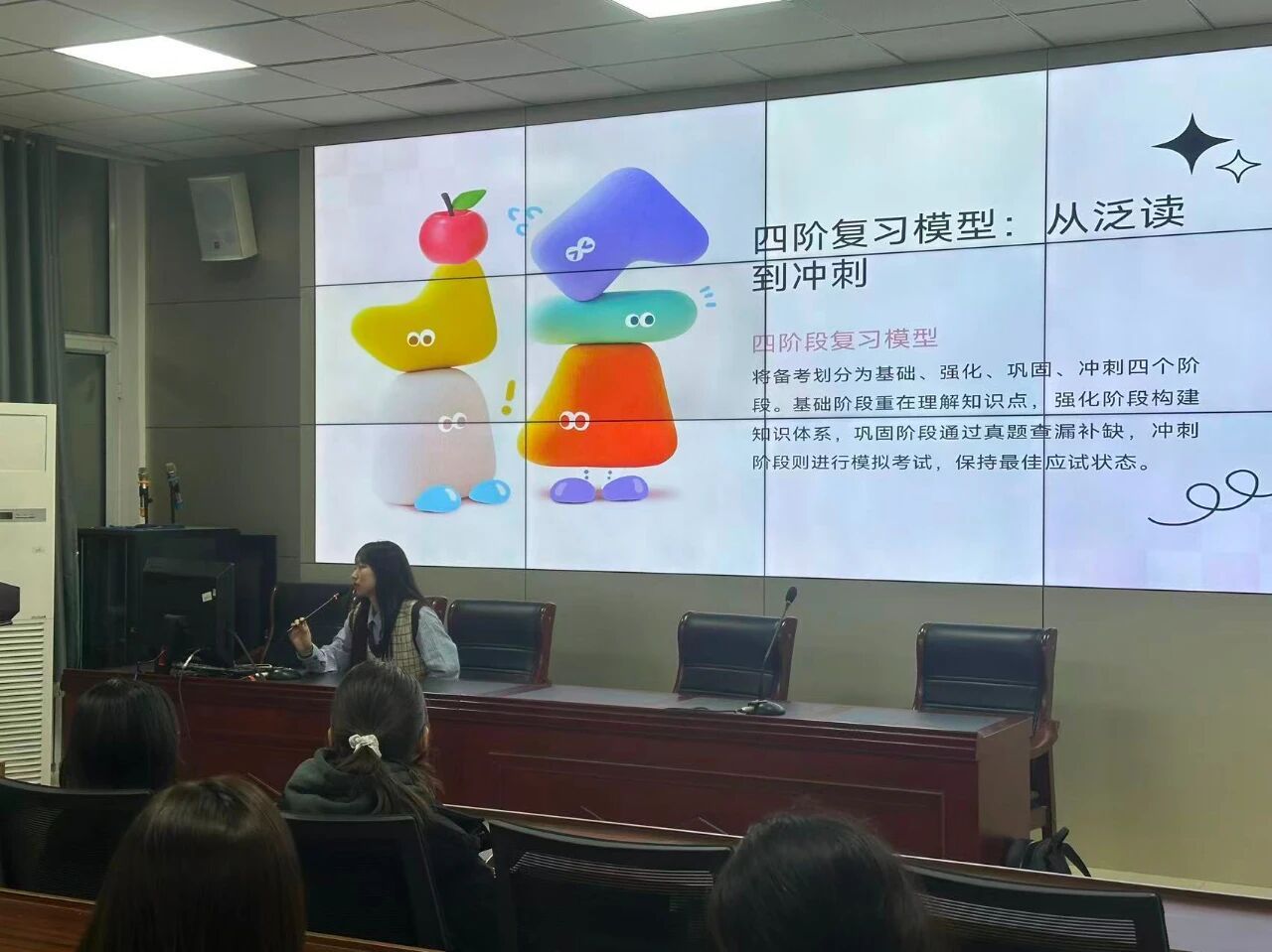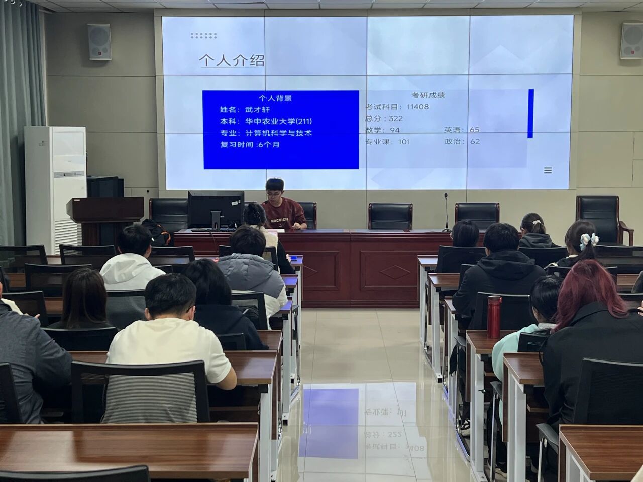 在分享环节中,三位同学系统梳理了各科目的复习重点与策略。他们指出,政治科目应注重理论框架构建与真题训练相结合;英语复习重在长期坚持词汇积累与阅读能力提升;数学与专业课则需深入理解原理,强化计算与应用能力。在备考规划方面,学长学姐们结合自身经历,强调了心态调整与规律作息的重要性,建议同学们根据个人实际情况制定合理的复习计划。在择校方面,他们提醒应全面搜集招生政策与历年录取信息,理性选择目标院校。