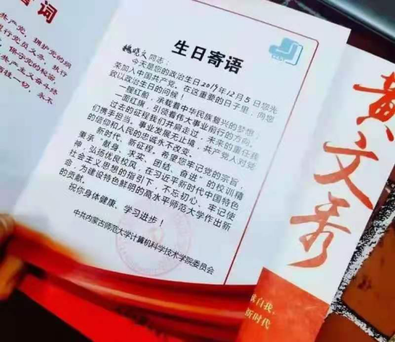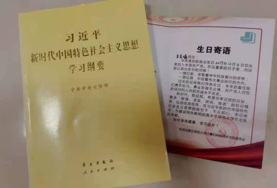 计算机系学生党支部书记伟丽斯同志向陆静芳、高颖杰、张雅雯、谈家璐、宫雨诗、李娜、吴梦阳、娜何雅8位同志赠送政治生日贺卡。