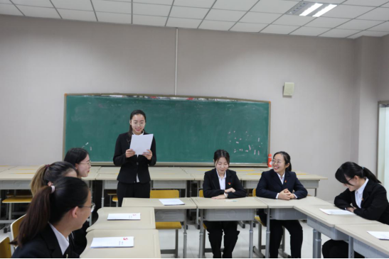 贾越同志介绍张泽楠、张慧楠、伊杰、伊俪娜、齐乐、李慧敏同志在预备期间的表现情况。