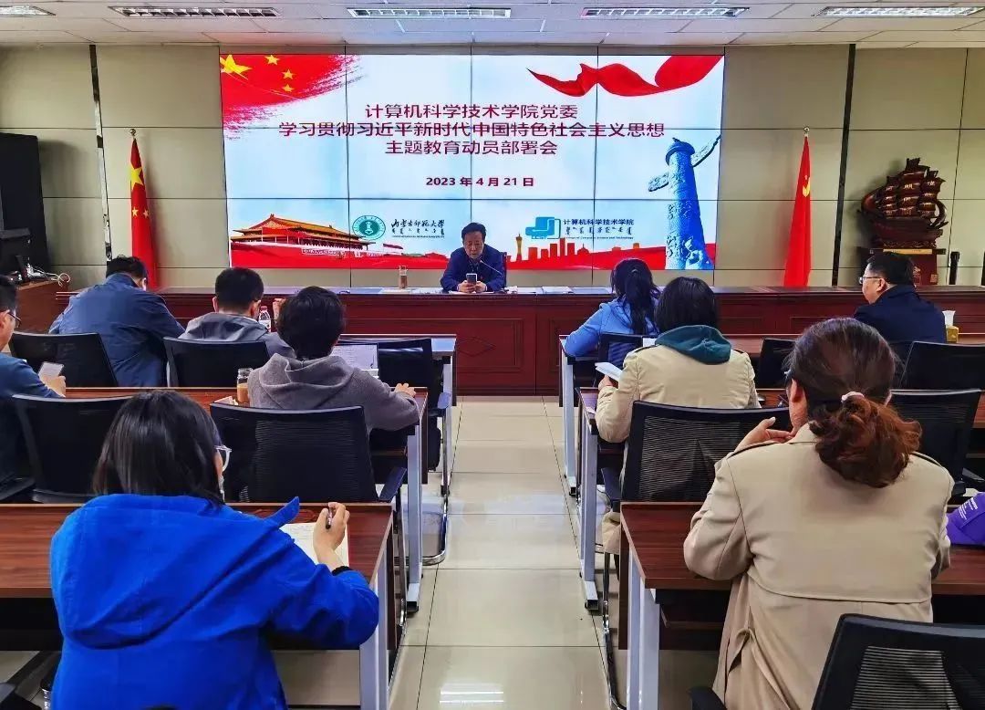 4月21日,买球官方网站党委在赛罕校区信息楼会议室召开学习贯彻习近平新时代中国特色社会主义思想主题教育动员部署大会。学院党委书记玉柱主持大会,并作动员讲话,全体党员参加动员部署会。