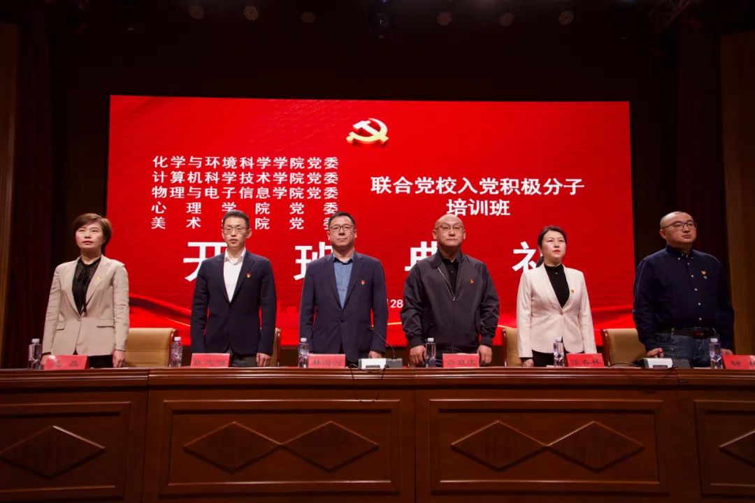 为深入学习贯彻习近平新时代中国特色社会主义思想和党的二十大精神,进一步加强对入党积极分子的培养教育,全面提高入党积极分子思想政治素质、党性修养和理论水平,进一步树牢“四个意识”、坚定“四个自信”,坚决做到“两个维护”。4月28日,买球官方网站党委,化学与环境科学学院党委、物理与电子信息学院党委、心理学院党委、美术学院党委联合在盛乐校区图书馆二楼报告厅举办2024年入党积极分子培训。化学与环境科学学院党委书记林海河、买球官方网站副院长柳林、物理与电子信息学院党委副书记、副院长欧志强、心理学院党委副书记张春林、美术学院党委副书记、副院长云双庆出席会议,各学院团总支、学就办、学生党支部书记及培训班500余名学员参加。开班典礼由化学与环境科学学院党委副书记、副院长范磊主持。