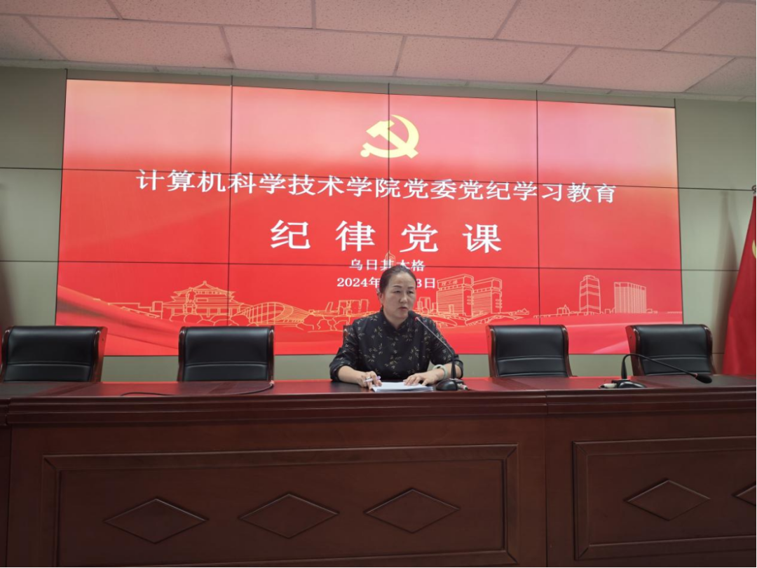 为深入学习贯彻习近平总书记关于全面加强党的纪律建设的重要论述以及关于党纪学习教育重要讲话和重要指示精神,进一步增强全体教工党员纪律意识和规矩意识,推动党纪学习教育走深走实。6月13日,买球官方网站党委书记乌日其木格同志以“学纪、知纪、明纪、守纪”为主题,在赛罕校区信息楼221报告厅为全体教职工党员讲授专题纪律党课。