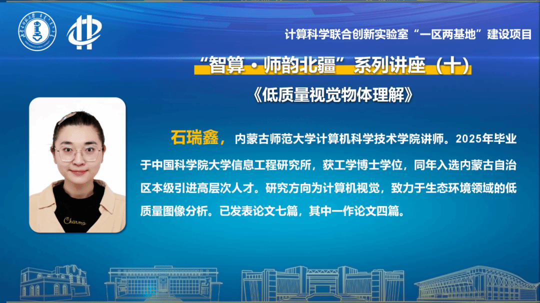“智算·师韵北疆”系列讲座依托买球官网与内蒙古中科超算科技有限公司、内蒙古和林格尔新区管理委员会共建的“计算科学联合创新实验室”——“,一区两基地”项目,致力于构建计算机科学领域的高水平学术交流平台。该系列讲座通过汇聚国内外顶尖学者的智慧,聚焦计算机学科前沿进展,助力学科建设与科研创新能力提升,为学院发展注入持续动力,为内蒙古高质量发展贡献“师大智慧”。